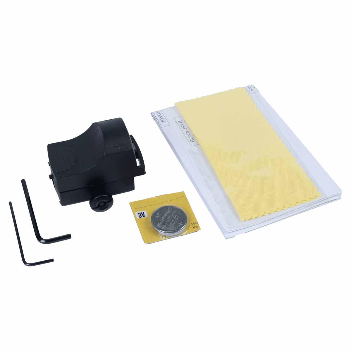 Possui ponto vermelho com 5 níveis de ajuste do brilho, alimentado por uma bateria CR2032.