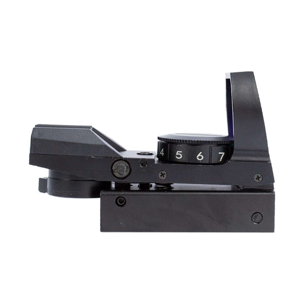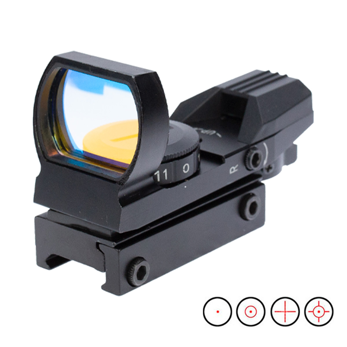 Red Dot Rossi com 4 opções de padrões de retículo na cor vermelha, que pode ser selecionado na parte traseira da mira.