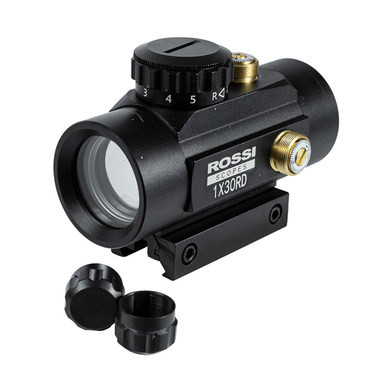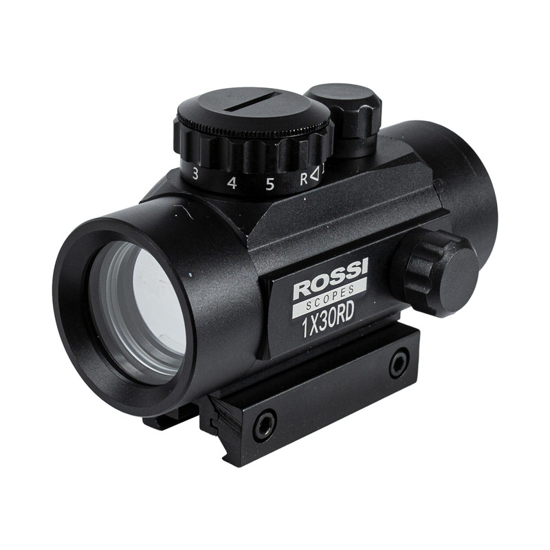 Mira holográfica, fabricada pela Rossi com suporte 3/8" E 7/8" para uso em trilhos 11mm e 22mm.