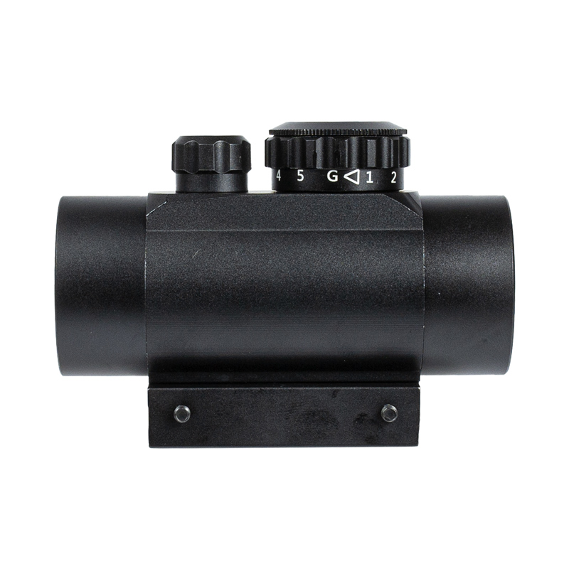 Retículo luminoso com ponto vermelho, possui ajuste de intensidade do brilho em até 7 níveis.