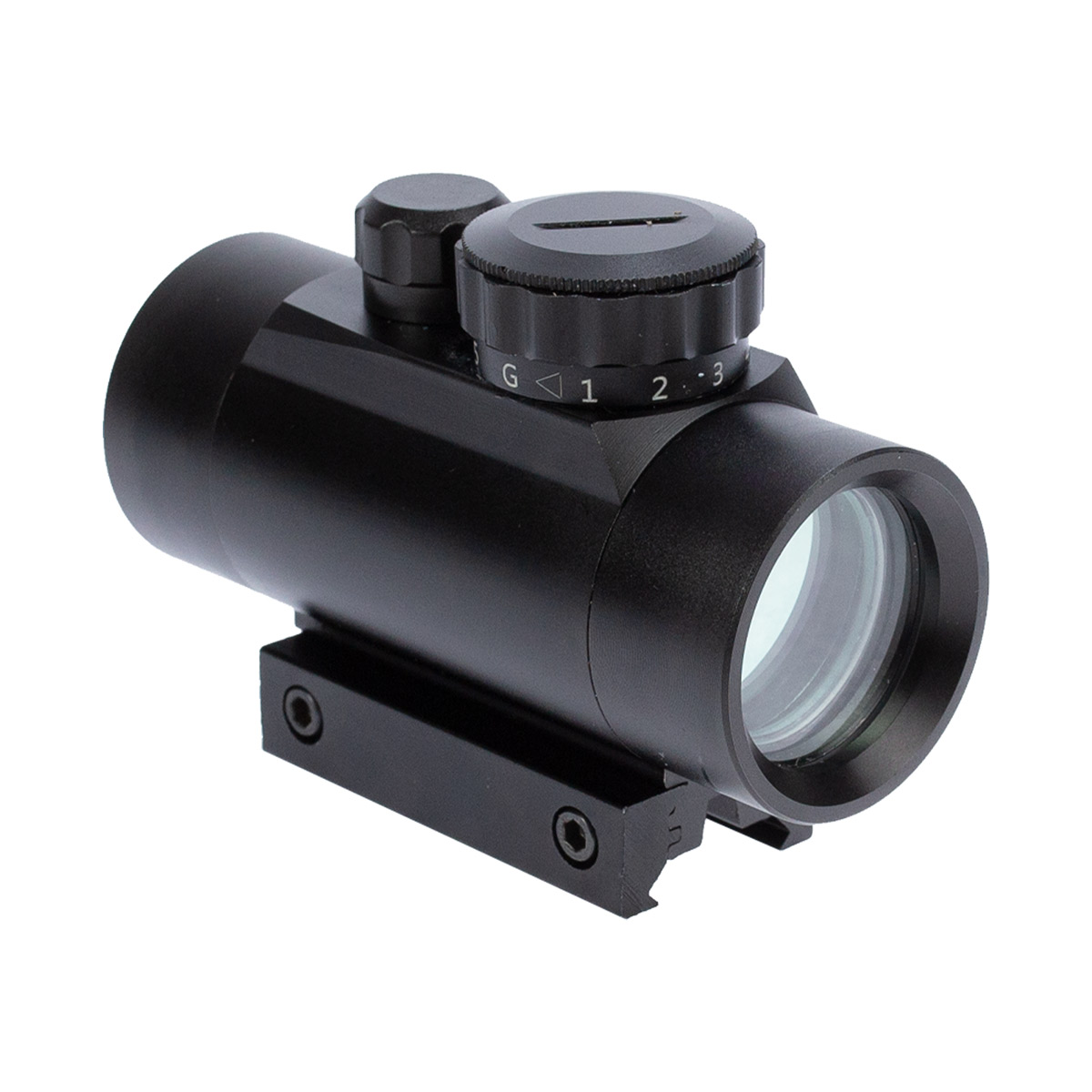 A intensidade de brilho do ponto pode ser regulada em até 5 níveis, de maneira fácil e sem necessidade de chaves, basta girar a torre para selecionar a intensidade desejada ou mudar a cor do retículo.