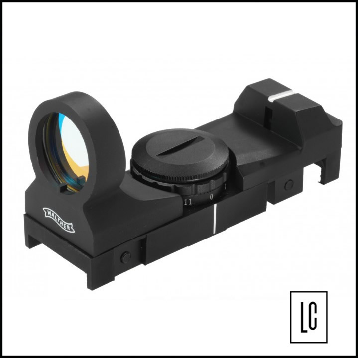 O Red Dot Walther Competition possui 11 níveis de brilho, sua lente objetivo é de 24mm e revestida.