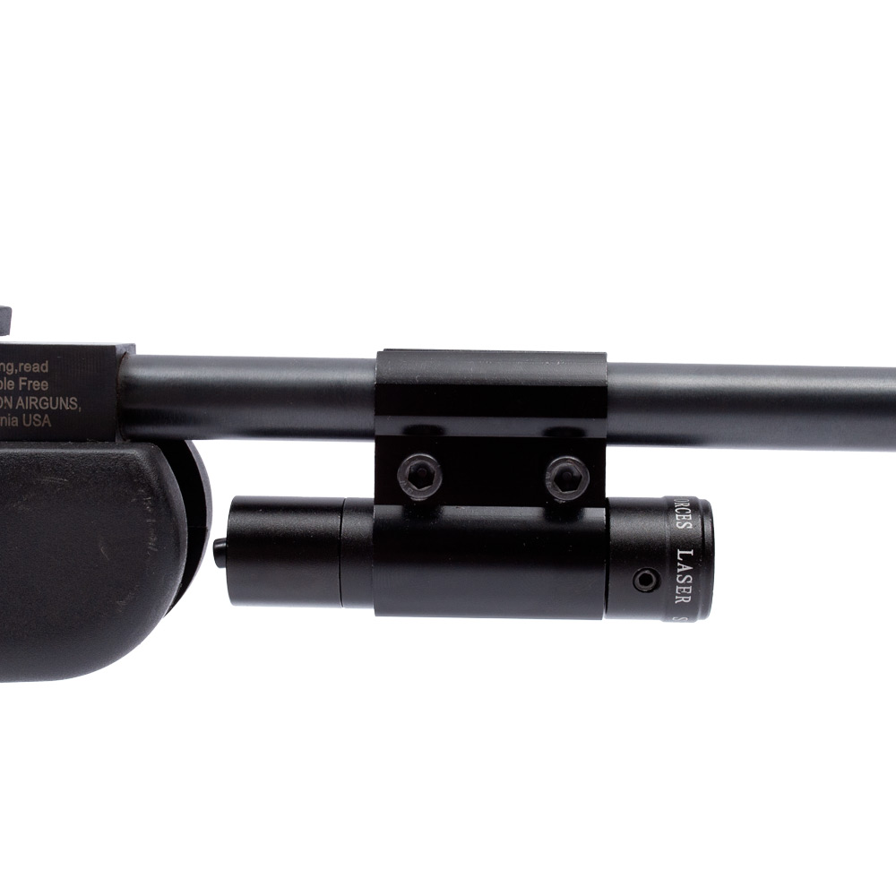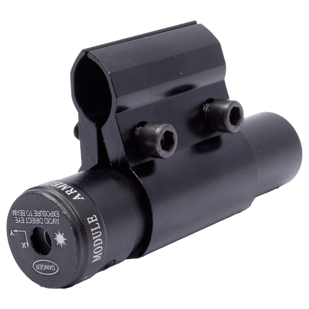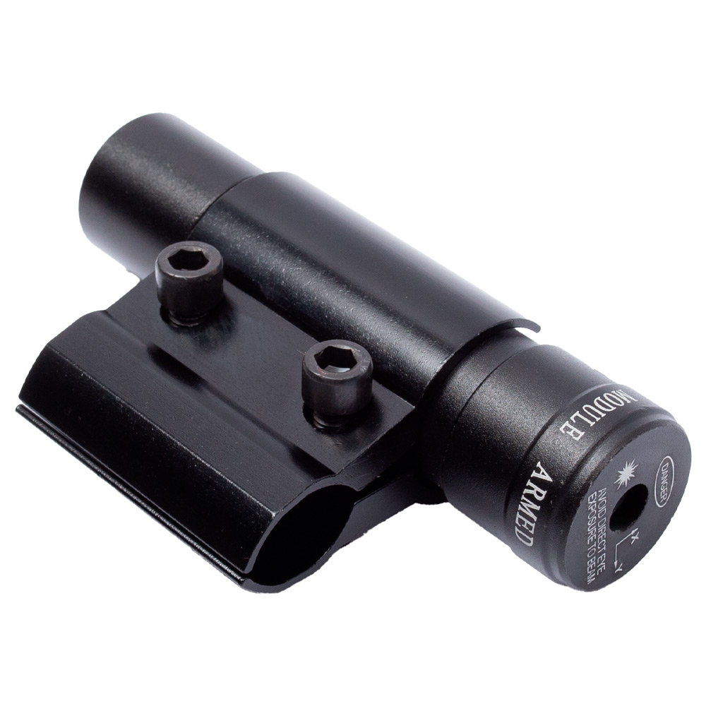 A mira laser é um acessório que projeta um feixe de luz na cor vermelha, possibilitando visualizar a trajetória do disparo e oferecendo uma rápida aquisição do alvo. É um acessório muito útil em ambientes de baixa luminosidade e oferece grande praticidade para o atirador.