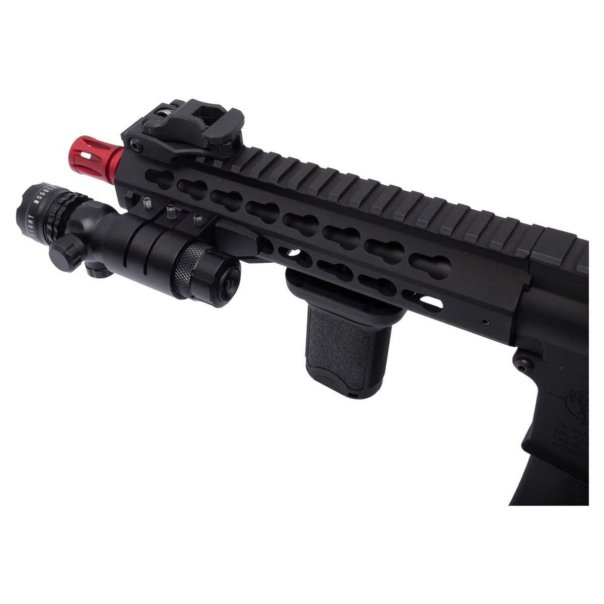 Essa mira projeta um feixe de luz verde que possibilita visualizar claramente e rapidamente a trajetória do disparo, mesmo em ambientes de baixa luminosidade, oferecendo tiros com maior taxa de acerto.