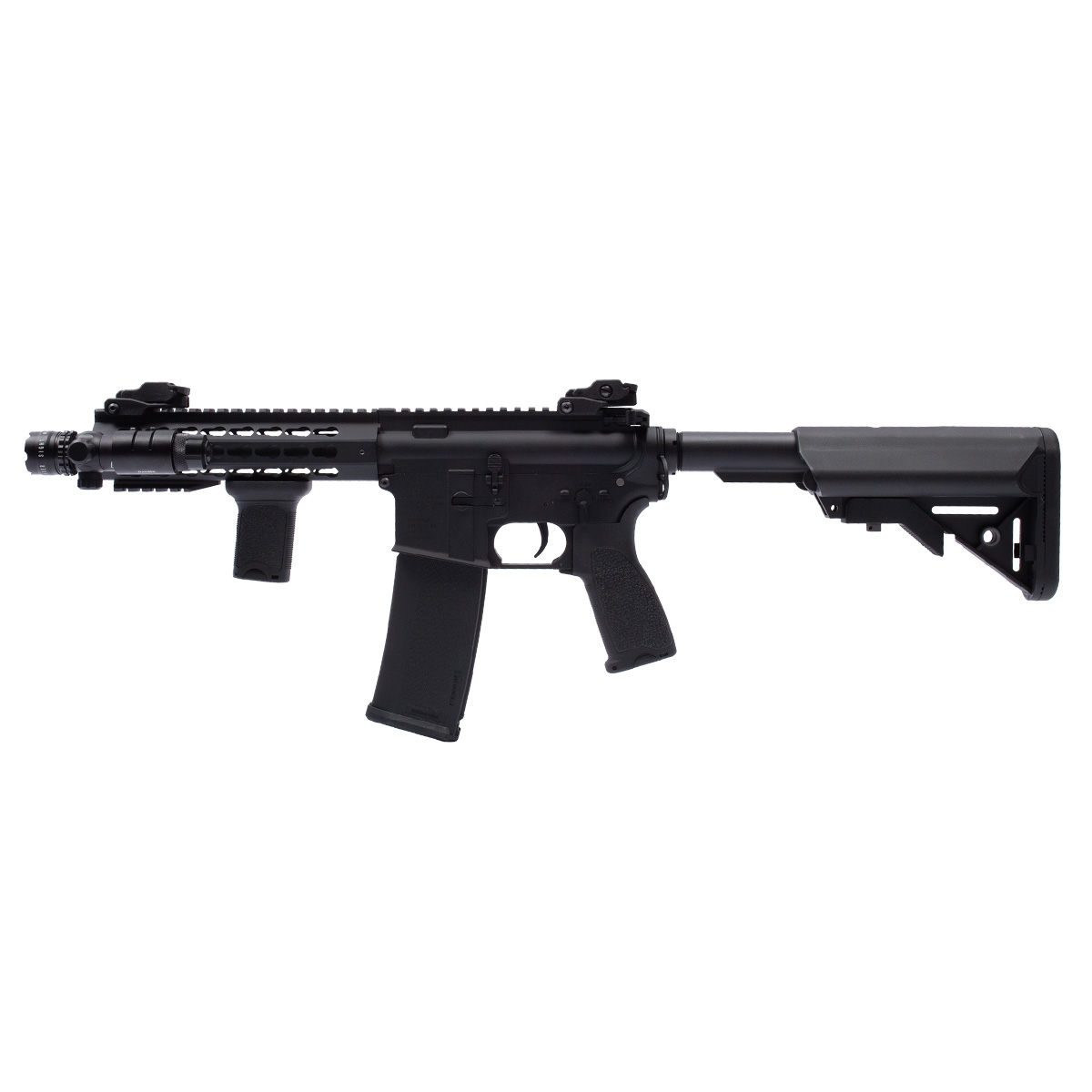 Possui um alcance superior a 100 metros, sendo extremamente útil em disparos de curta, média e longa distância.
