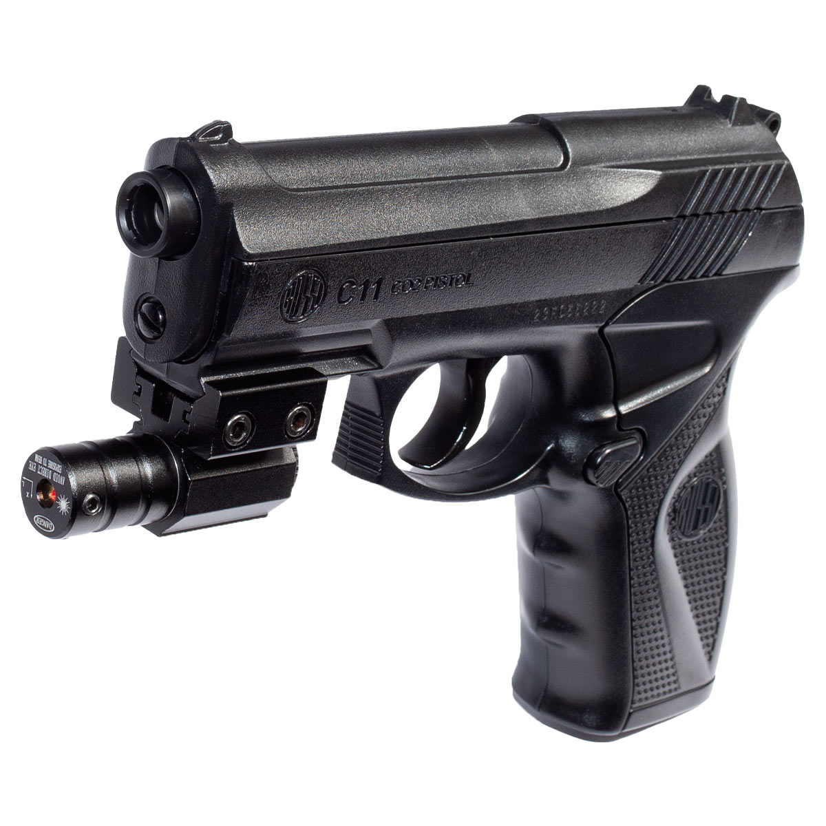 A mira laser serve para melhorar sua precisão de tiro, especialmente em ambientes de baixa luminosidade e longas distâncias. Também oferece rápida identificação de alvos.
