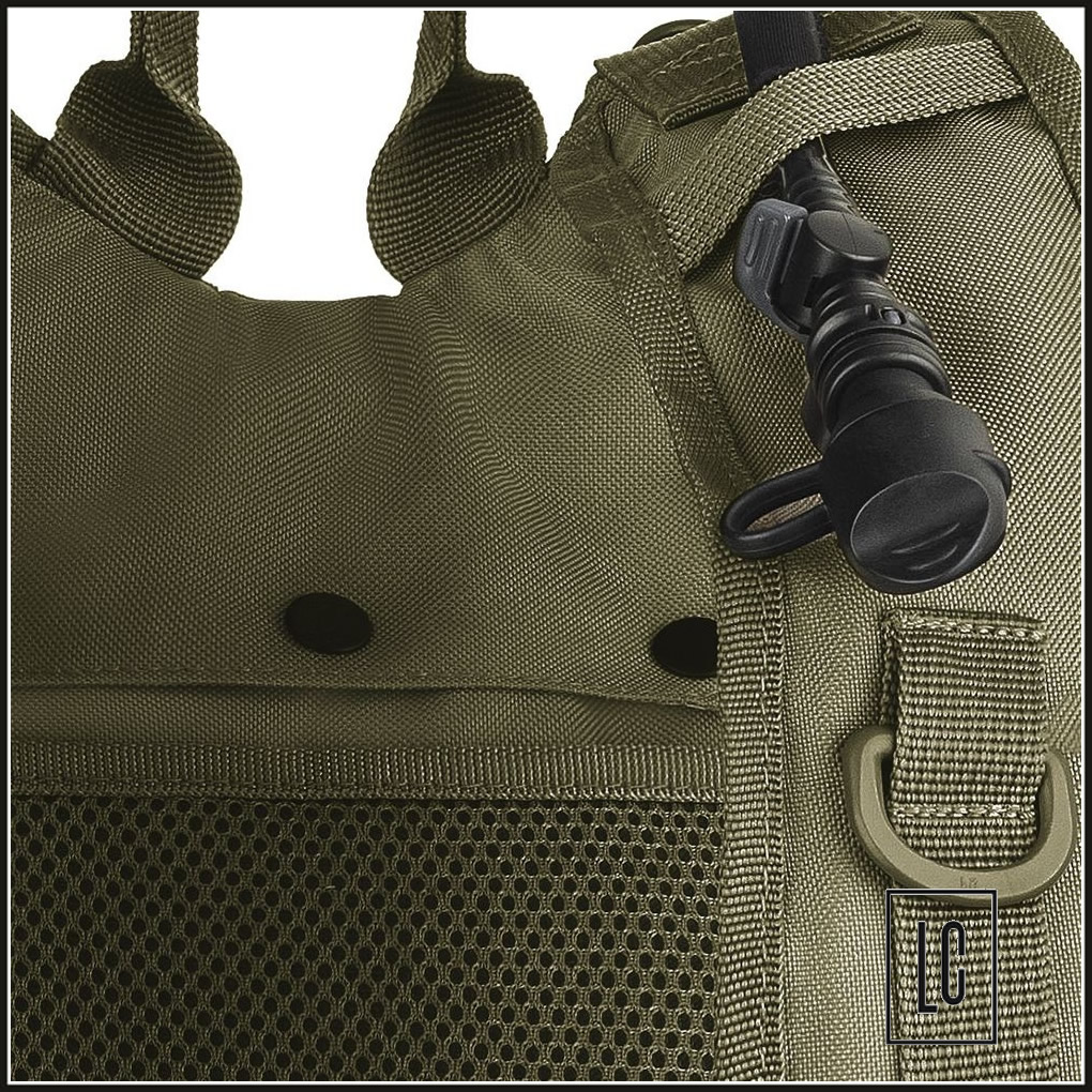 Acomode seu refil de hidratação no compartimento dedicado, acople bolsos no sistema MOLLE e armazene seus equipamentos no bolso frontal.