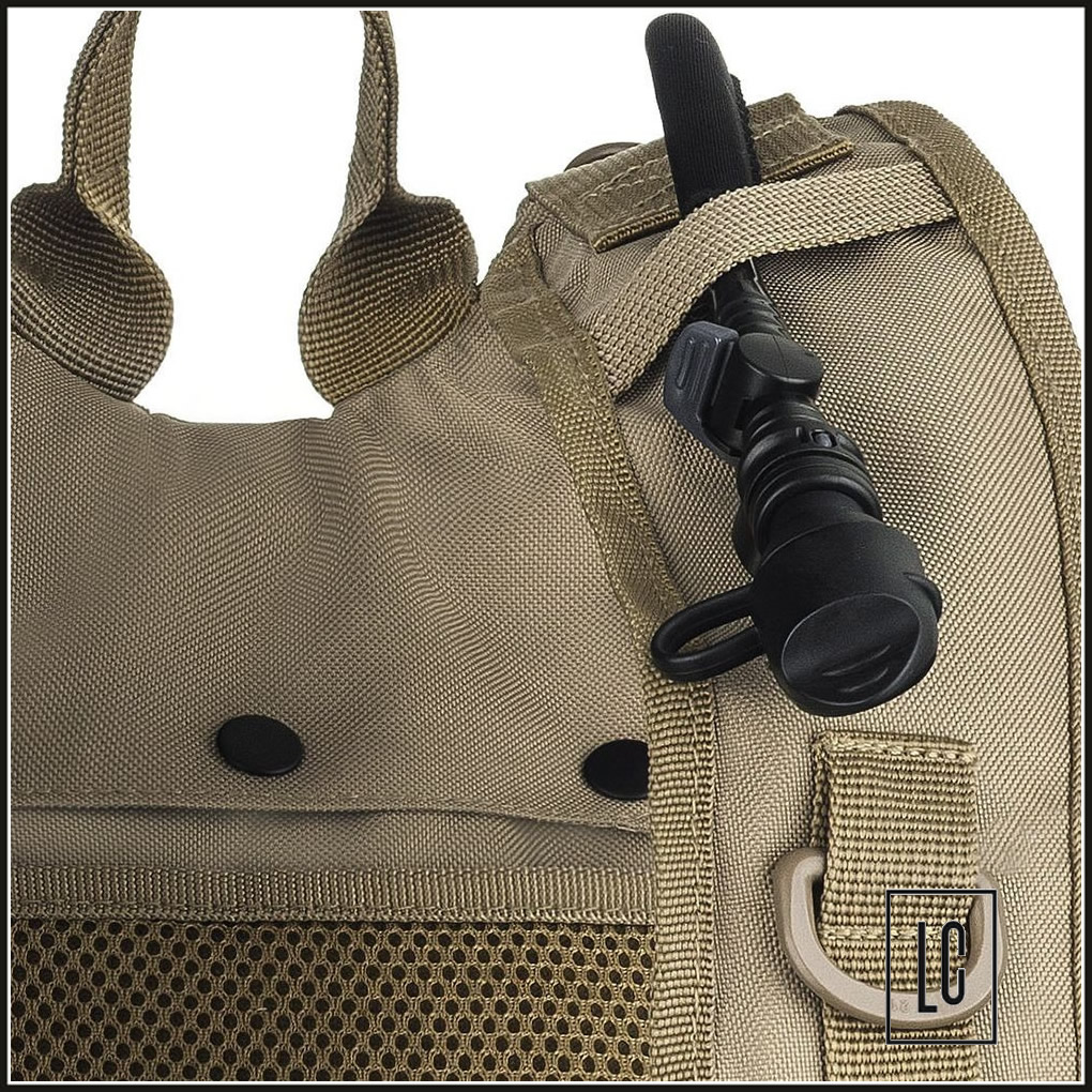 Acomode seu refil de hidratação no compartimento dedicado, acople bolsos no sistema MOLLE e armazene seus equipamentos no bolso frontal.