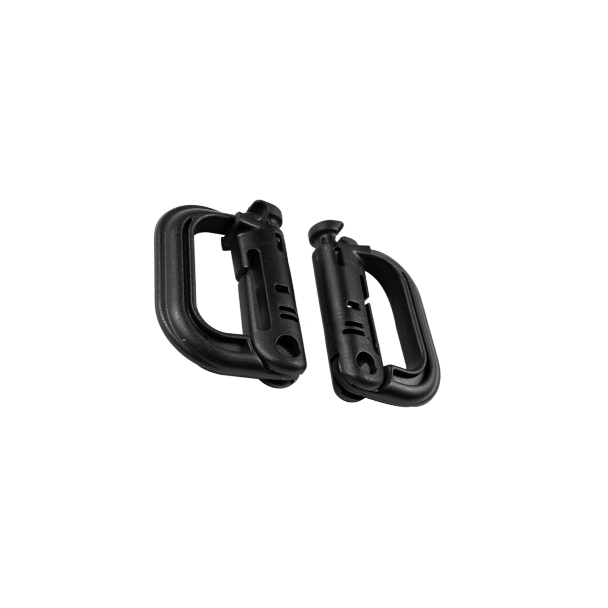 Par de mosquetões multifuncionais D-Ring, indicado para atividades táticas.