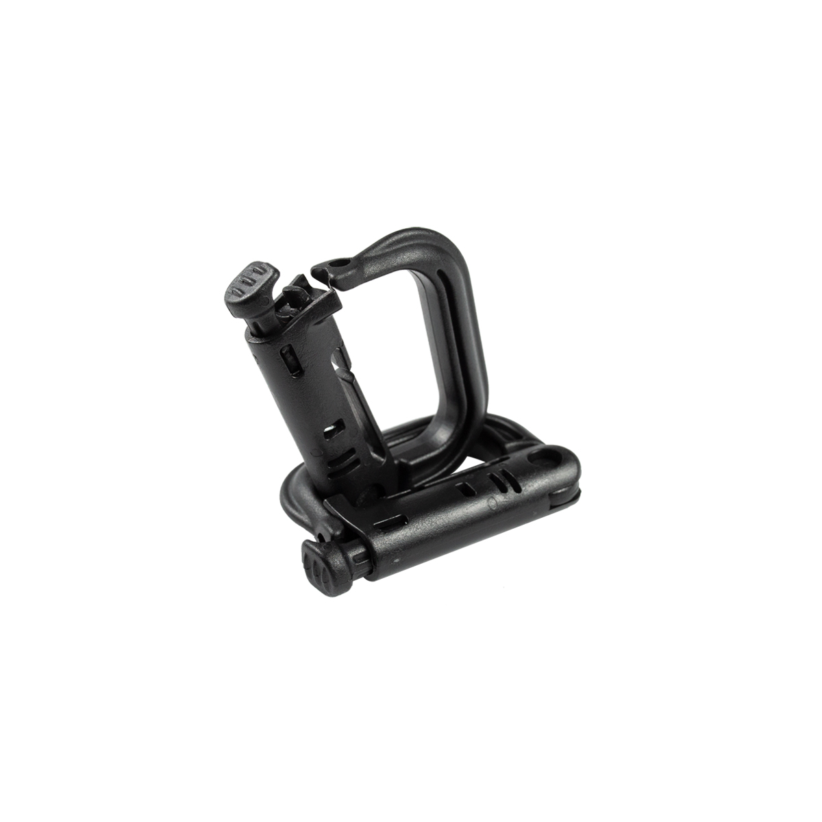 Indicado para uso em coletes táticos e outros equipamentos que possuem sistema MOLLE para fixação do Mosquetão.