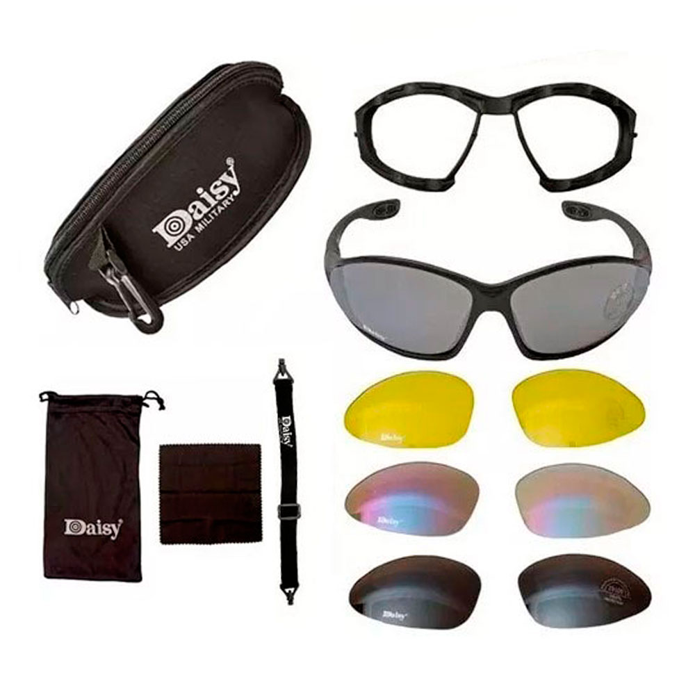 Óculos de proteção Daisy C4 Military, com lentes em policarbonato de alta resistência, proporcionando maior segurança para o operador.