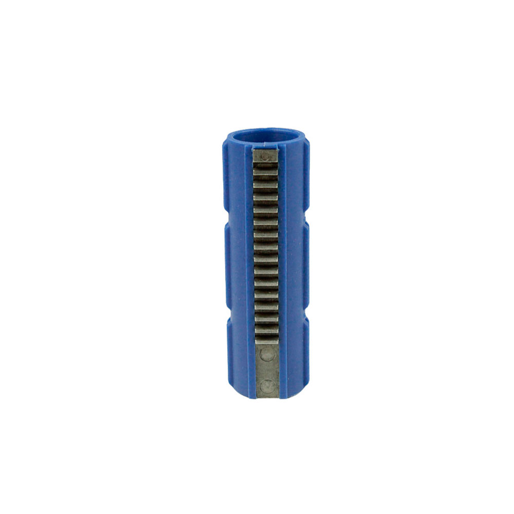 Pistão em polímero de alta resistência e durabilidade, construção que facilita o ciclo da AEG. Com 15 dentes em metal CNC.