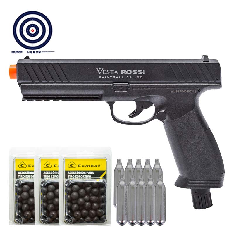 Combo feito pela LC, conta com Esferas .50 para carregar sua arma, Cilindros de CO2 para impulsionar os disparos e Alvos de Treino Rossi.