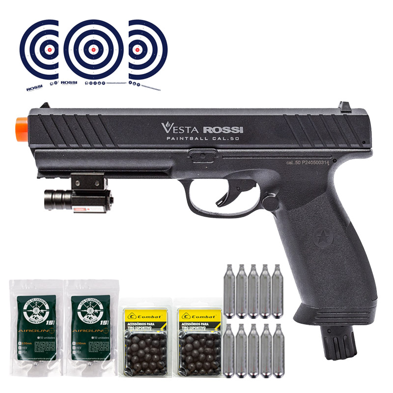 ROSSI VESTA PISTOLA .50 DEFESA PESSOAL - DEFENSE PDW50 + MIRA LASER + KIT ESFERAS + CO2 + ALVOS
