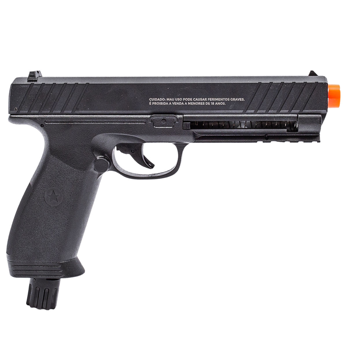 Seu sistema de propulsão é CO2 e utiliza 1 cilindro de CO2 de 12 g para alimentação.