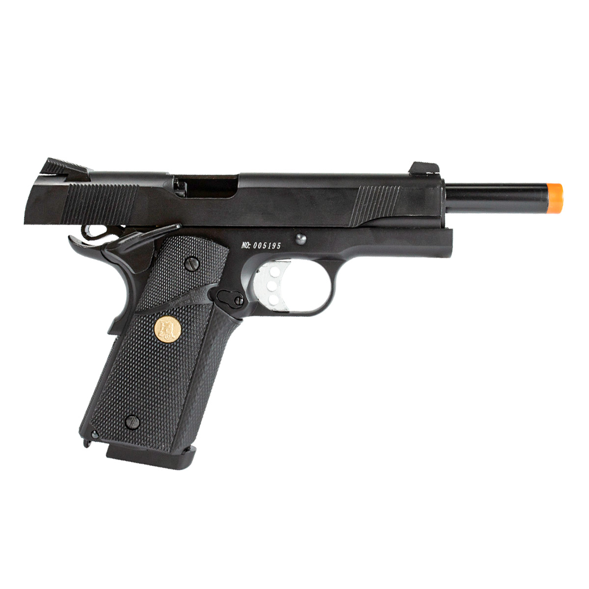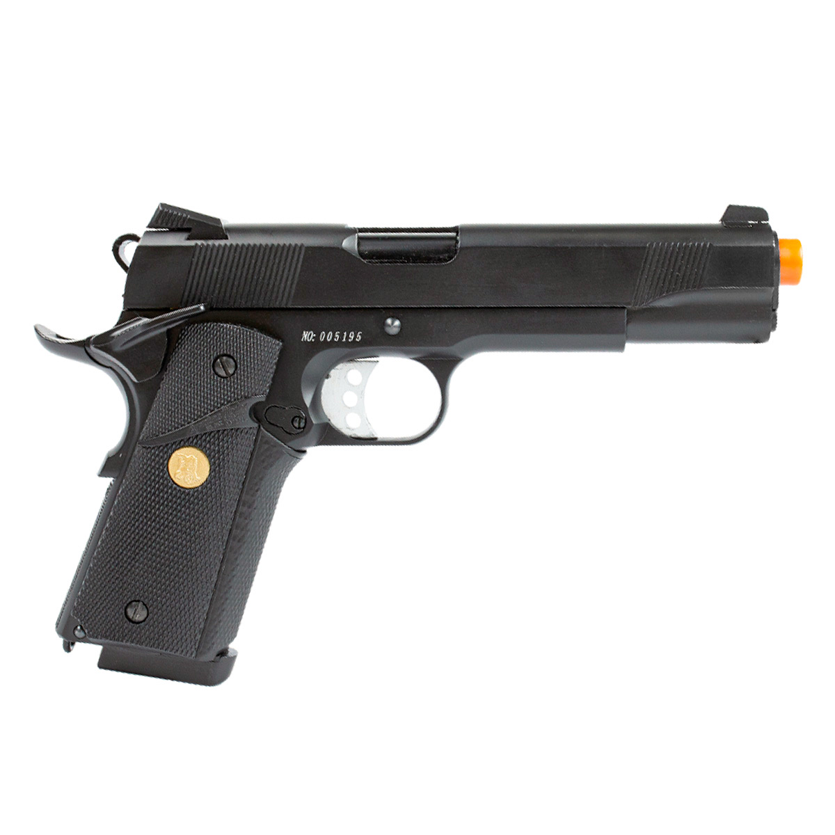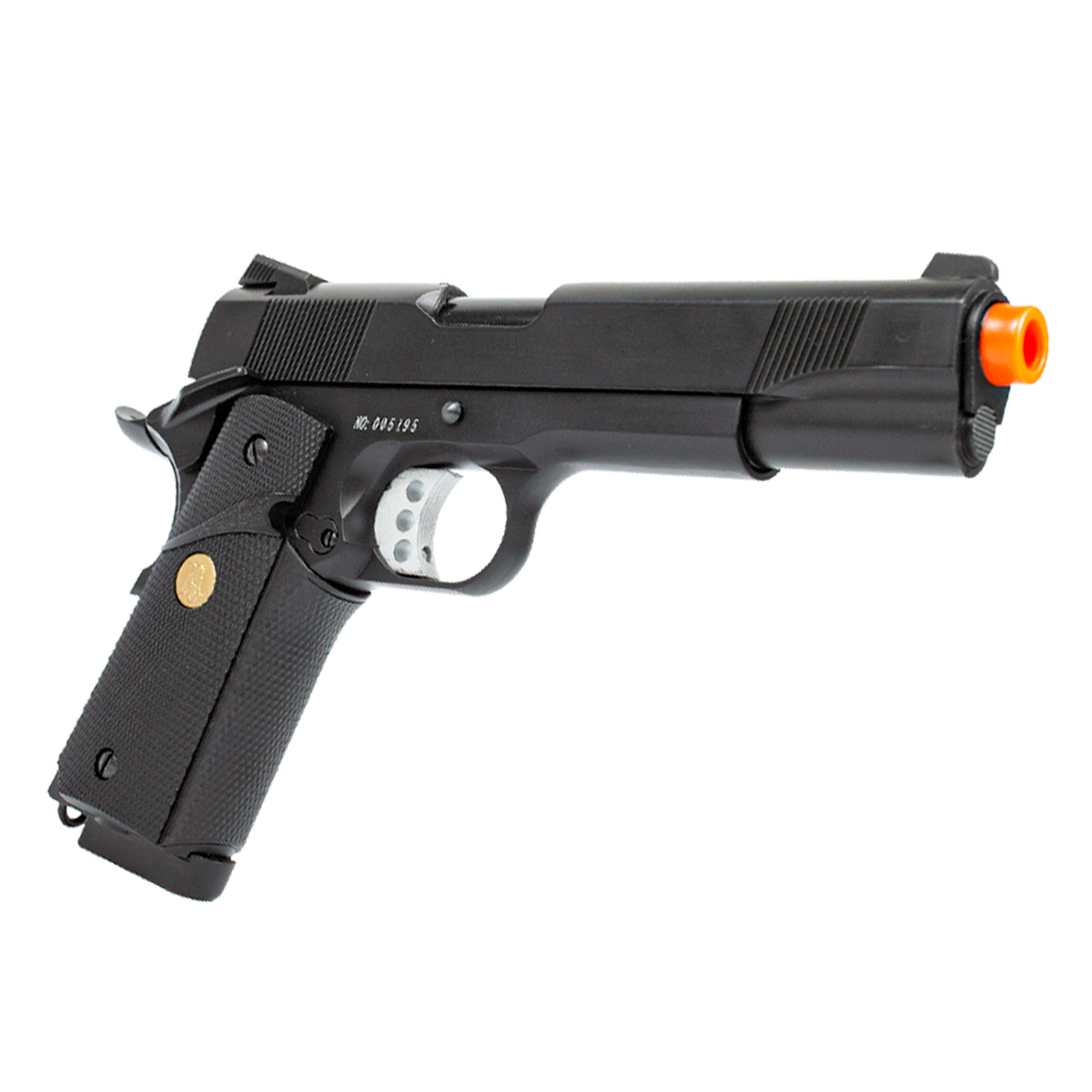 A Pistola Airsoft a Gás 1911 728 é fabricada pela Double Bell, inspirado na famosa Pistola 1911 Colt. Tem altíssimo realismo e detalhes feitos para impressionar! Seu gatilho prata e detalhe dourado na empunhadura deixam essa pistola ainda mais bonita.