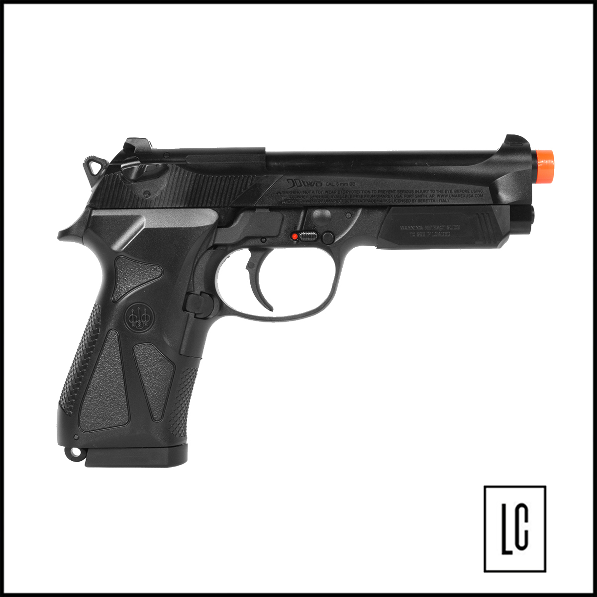 PISTOLA DE AIRSOFT BERETTA 90TWO é um modelo desenvolvido pela umarex, feito em plástico, modelo possui escala 1/1 em relação a modelo Beretta de fogo, está muito comum na Italia. Modelo acompanha cerca de 50 BB's para teste, no peso de 0,12g, cor amarela, pistola na cor preta.