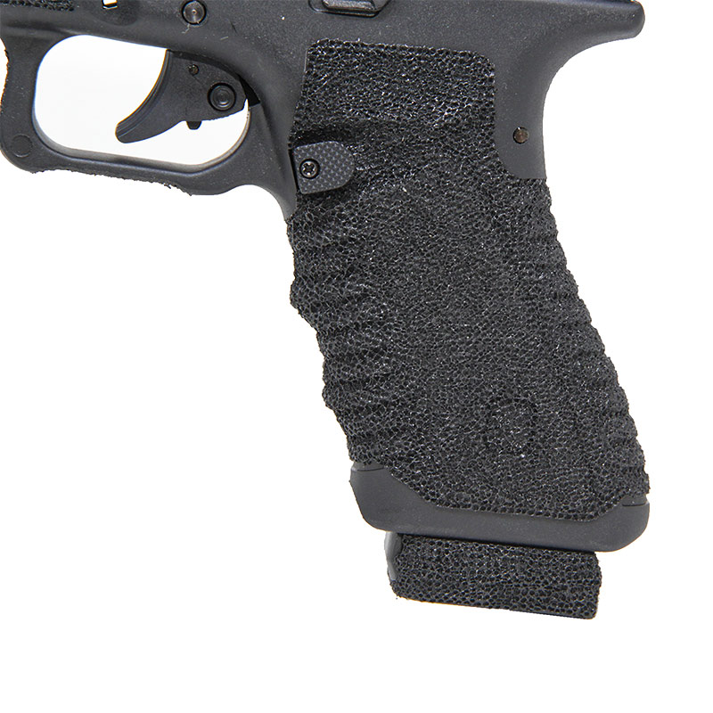Empunhadura anatômica texturizada que permite uma pegada mais firme, principalmente de luva.