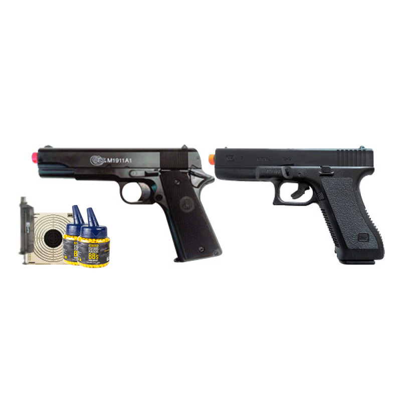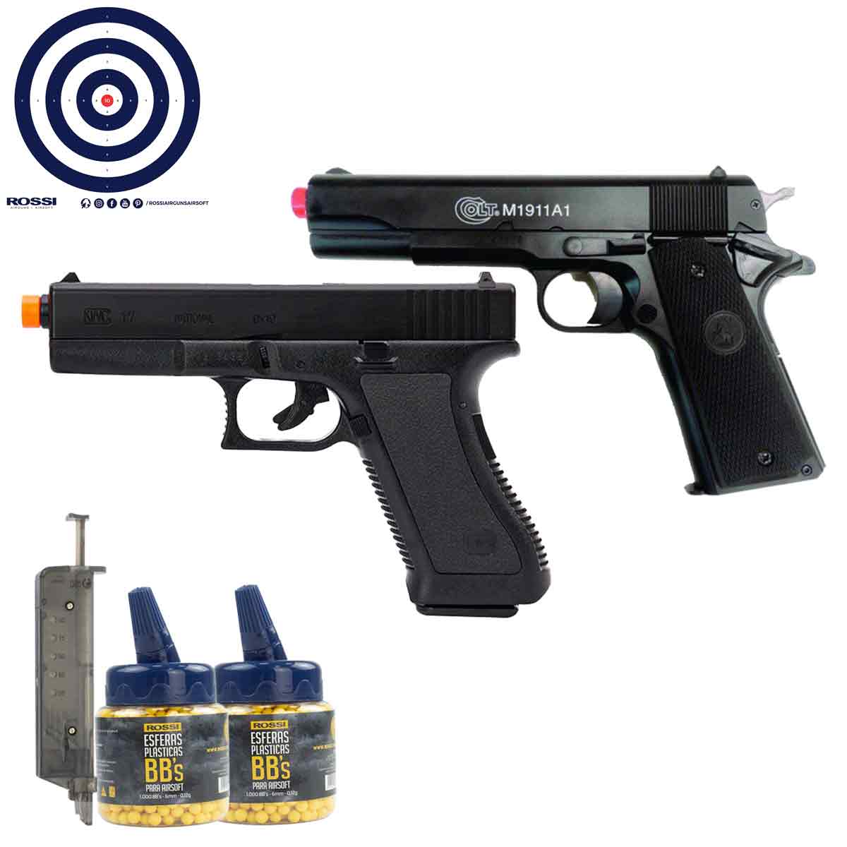 Pistola Airsoft Colt M1911 A1 e Glock G7 + Kit LC