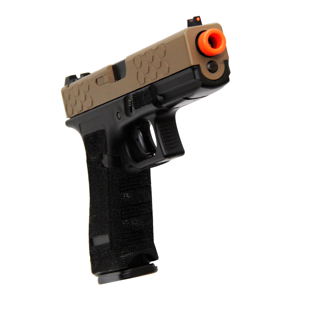 Esse modelo possui sistema BlowBack, que torna o modelo ainda mais realista, sendo ideal para treino de tiro prático. Com ação de tiro semi automática, não contém modo rajada.