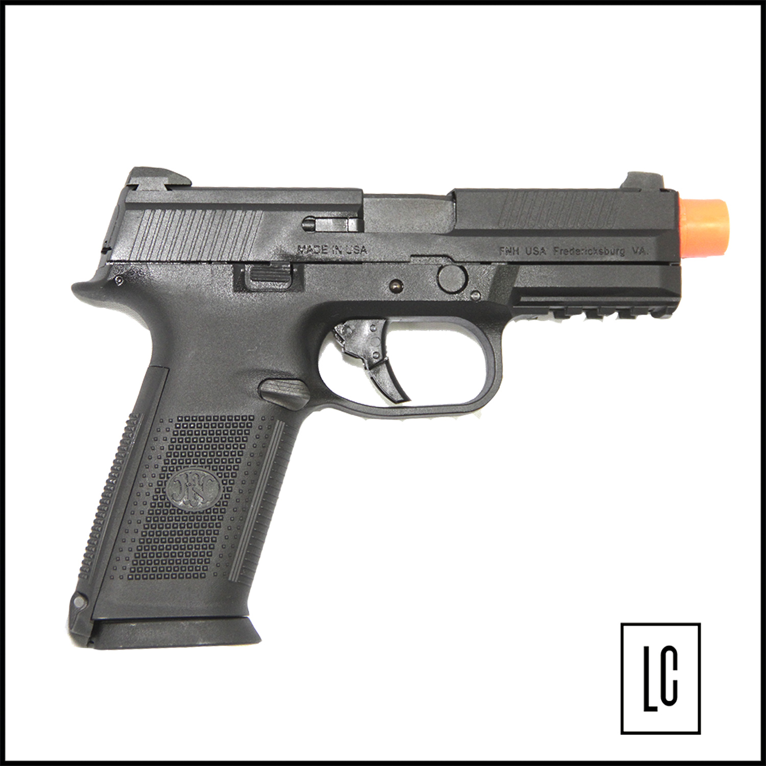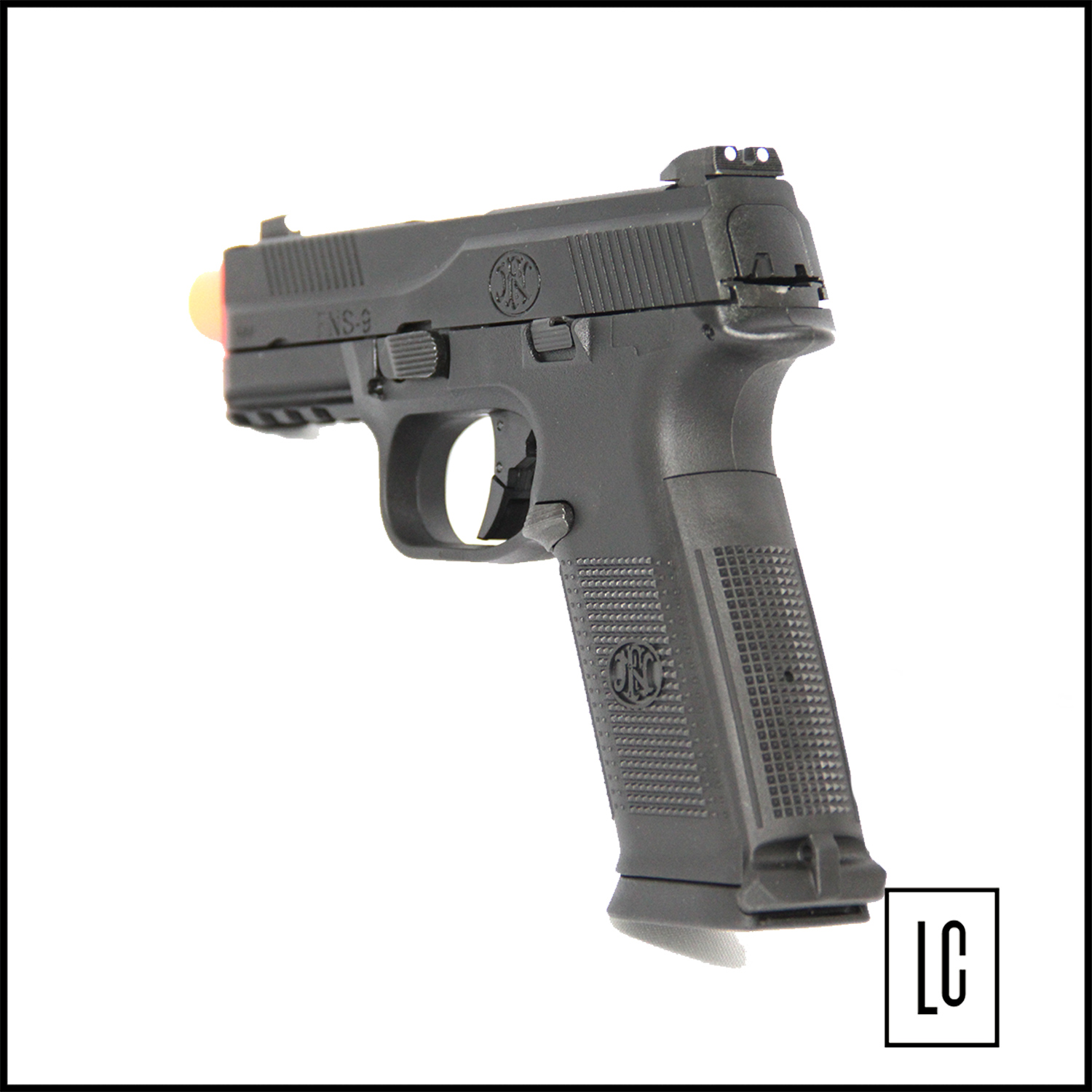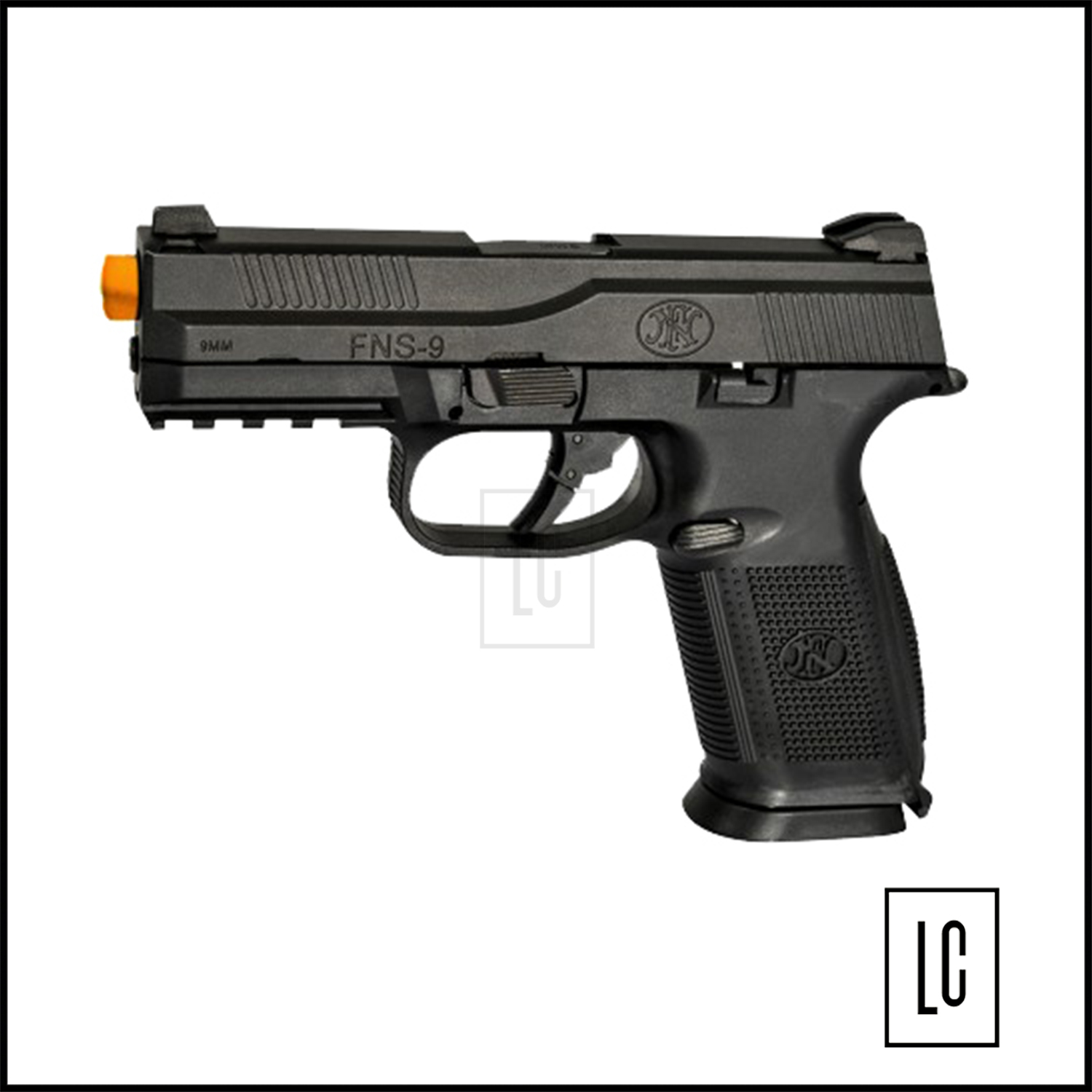 A pistola de airsoft GBB green gás Cybergun possui um design replicado do famoso modelo FNS-9 criado pelo fabricante Belga de armas, FN Herstal.