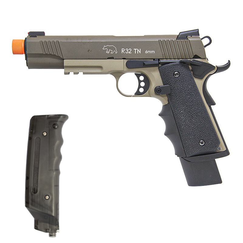 A pistola R32 1911 possui um sistema BlowBack que a torna muito realista.