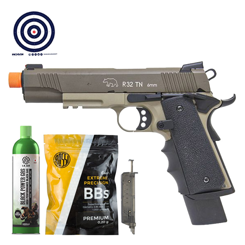 Pistola Airsoft Green Gás 1911 R32 Tan Army - Características: