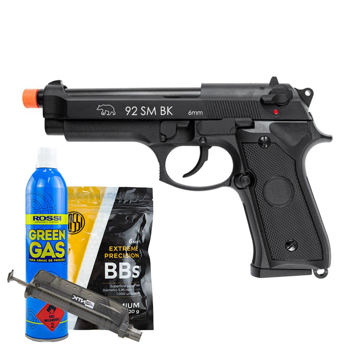 PISTOLA AIRSOFT GBB BERETTA M92 FULL METAL + AIRSOFT BBS 0.20 ROSSI PACOTE COM 1000 UNIDADES