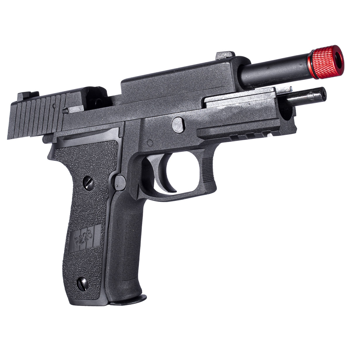 Pistola Airsoft P226 com simulador de recuo (Blowback) e propulsão a Gás.