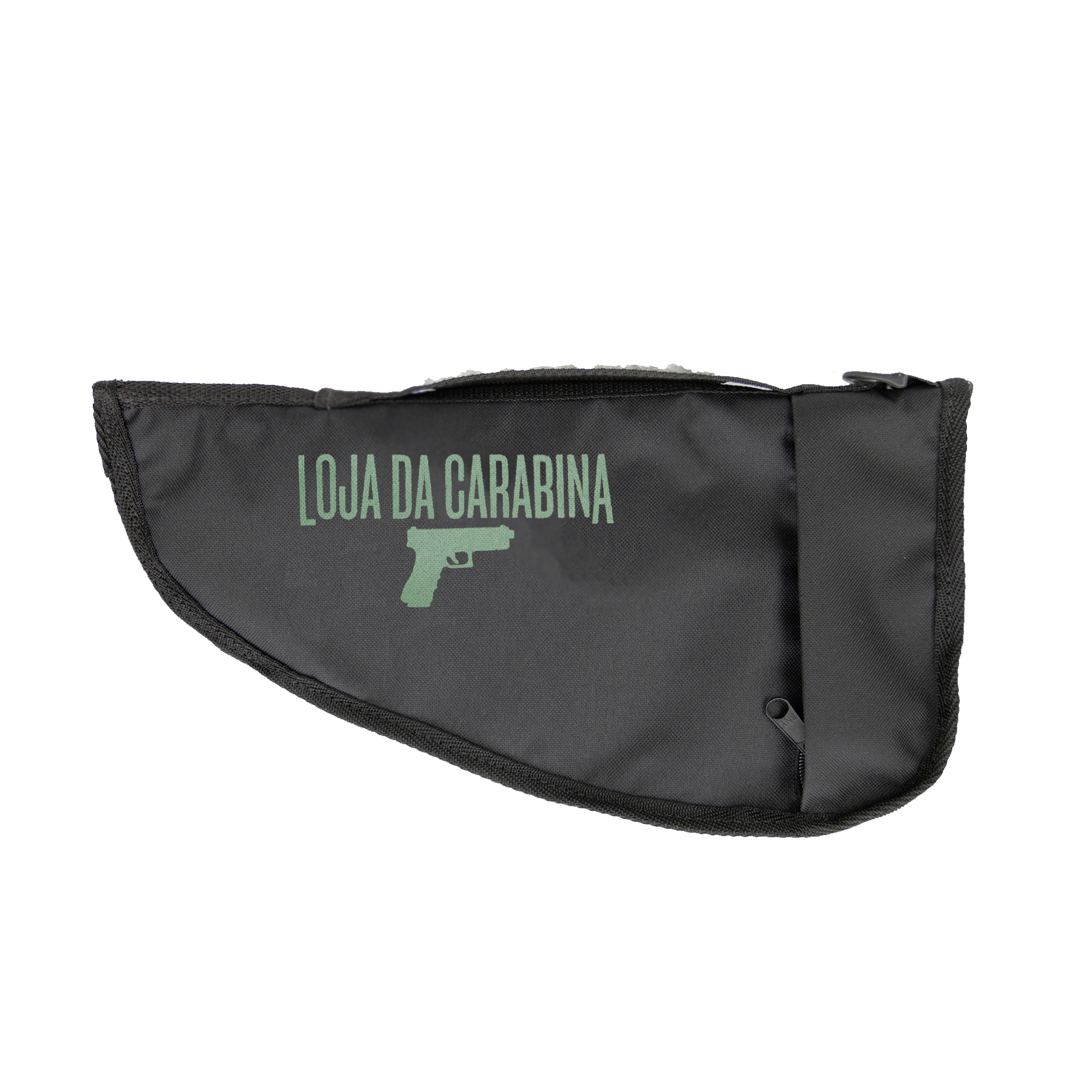Uma capa personalizada LC para levar a sua pistola, com compartimento para guardar o segundo magazine.