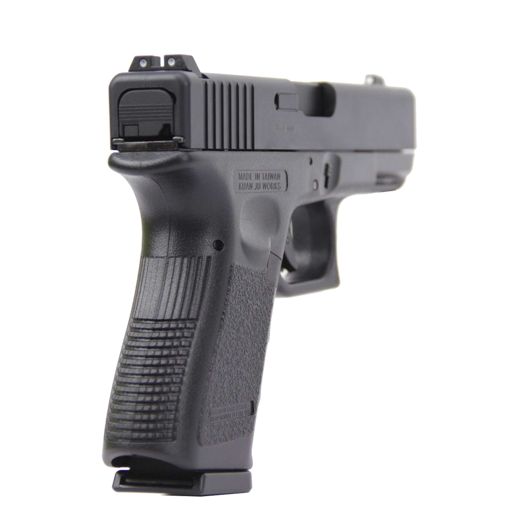 Glock versão compacta, fabricada pela KWJ, possui excelente desempenho com uma ótima relação custo-benefício.