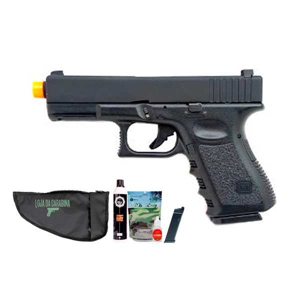 Seu sistema de propulsão é por Green Gás, também incluso um cilindro de 600ml para que você possa utilizar a sua Pistola Glock assim que receber!