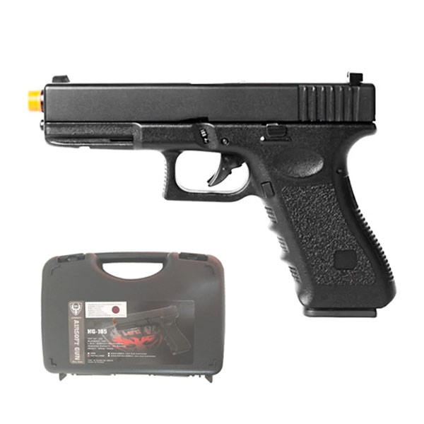 Pistola Airsoft GBB Glock G18 fabricada pela HFC, é uma linda réplica com grande autonomia, desempenho e uma excelente empunhadura, bem firme para disparos com maior precisão.
