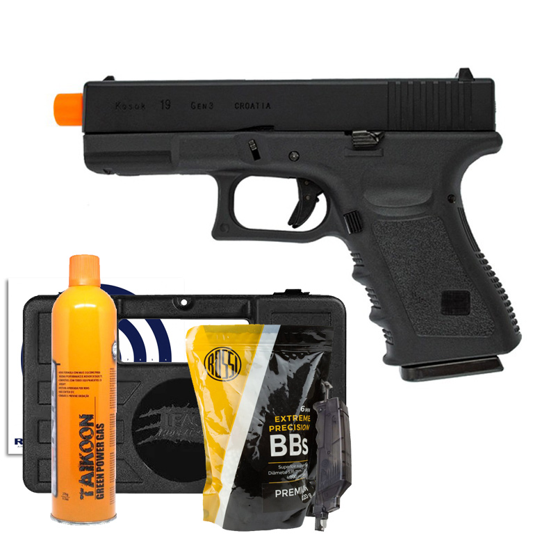 PISTOLA AIRSOFT G19 + SPEEDLOADER + BBS + GREEN GÁS + ALVO + CASE RÍGIDO