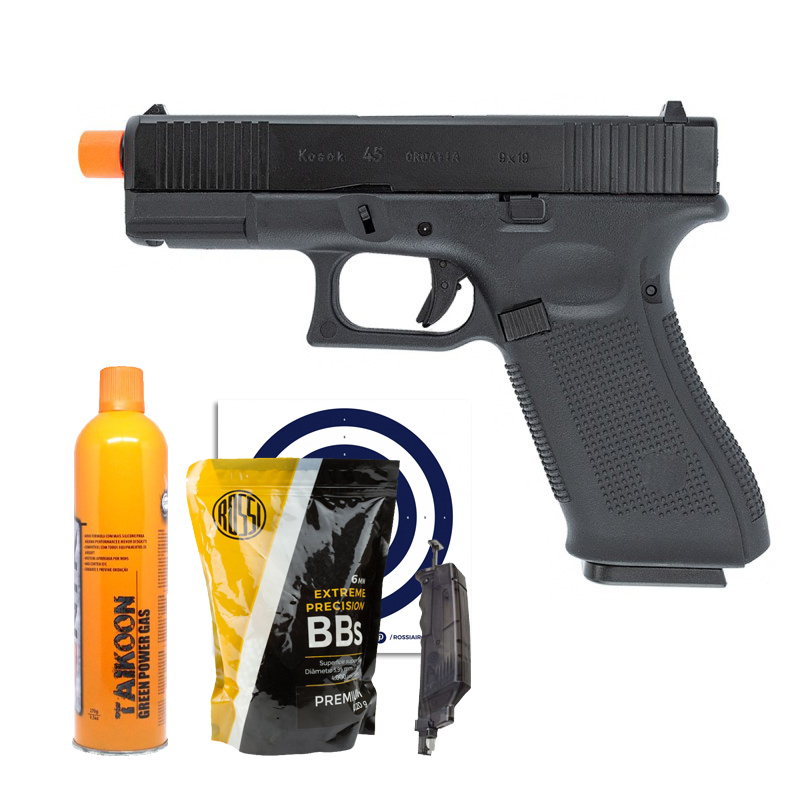 PISTOLA AIRSOFT G45 + SPEEDLOADER + BBS + GREEN GÁS + ALVOS