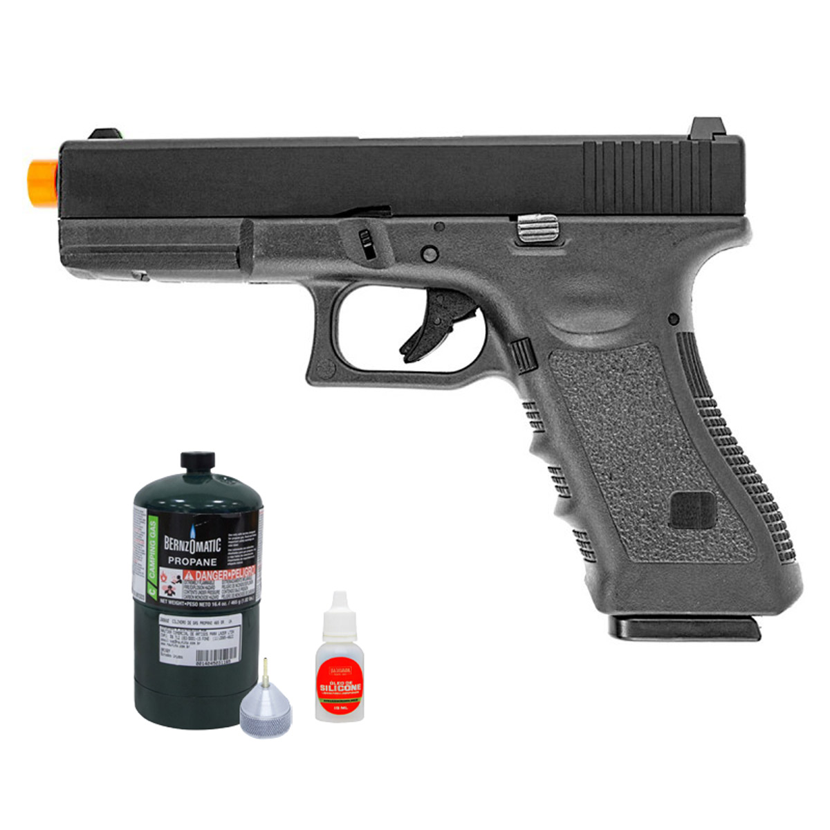 PISTOLA AIRSOFT GBB GLOCK R17 BLOWBACK GREEN GAS + CILINDRO DE GÁS PROPANO
