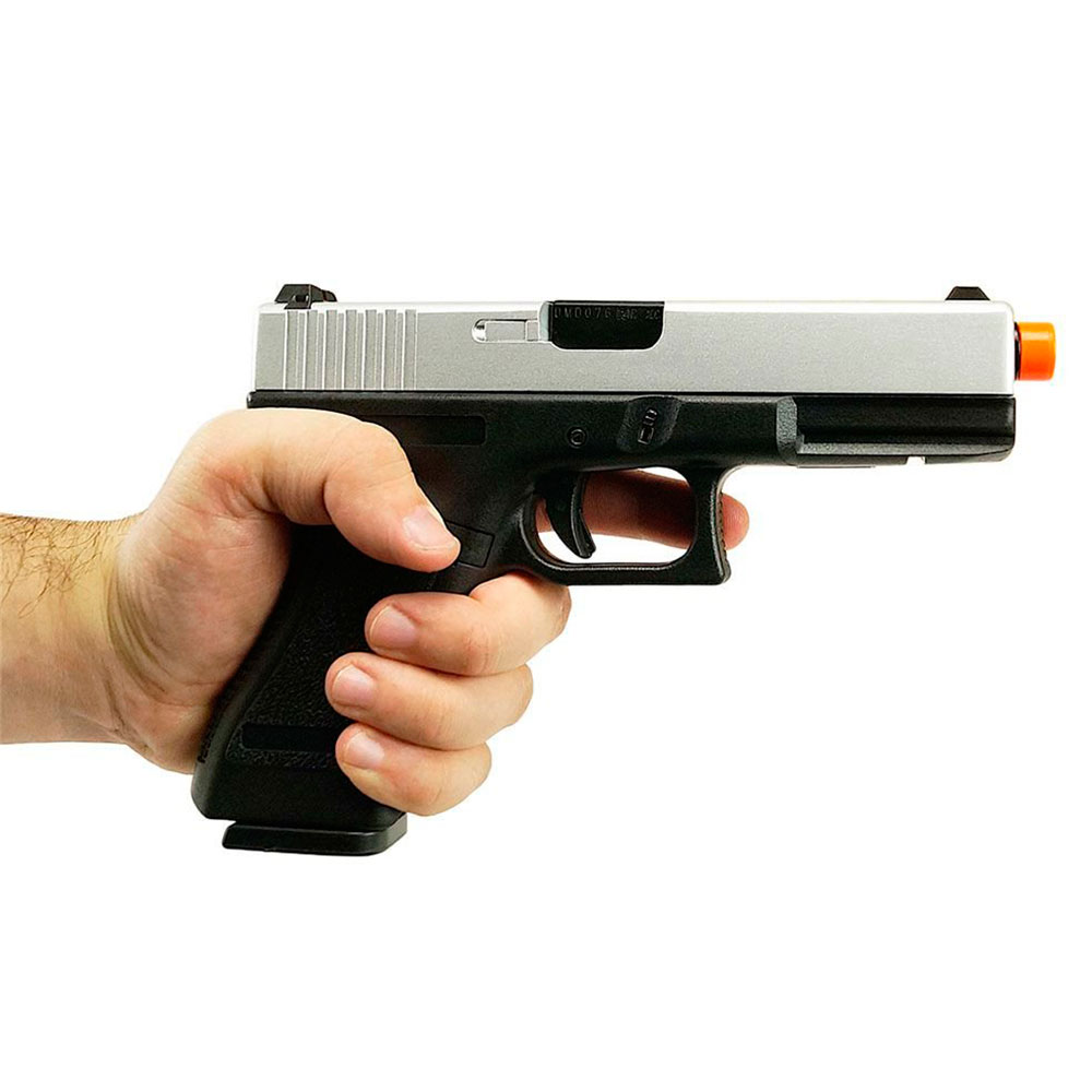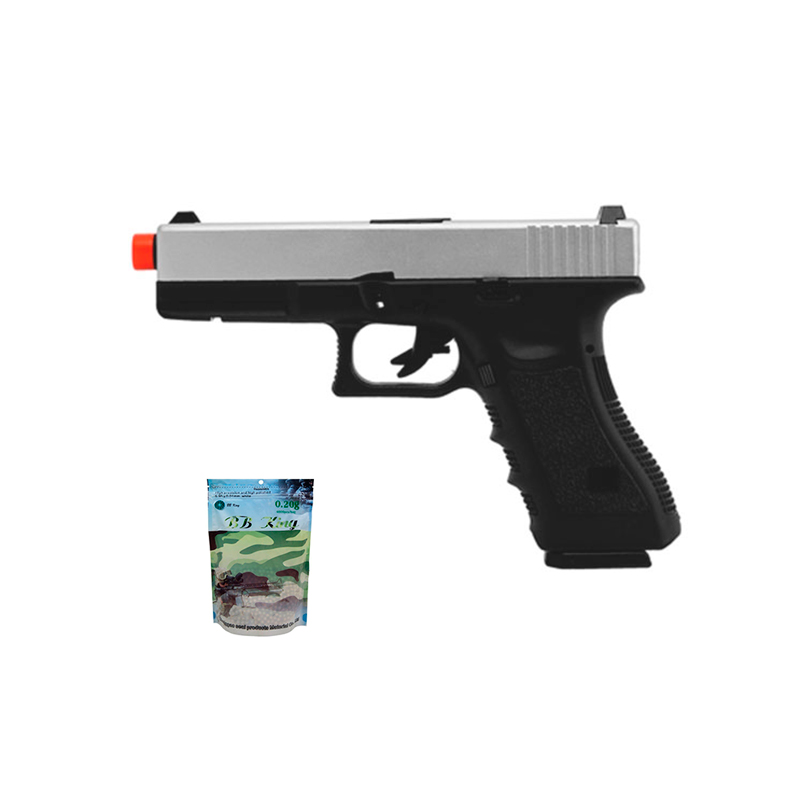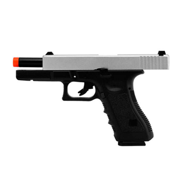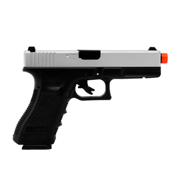 A Pistola de Airsoft a Gás GBB Green Gas Glock R17 Silver, é indispensável para jogadores que procuram uma pistola modelo Glock 17 com Blowback e green gás como forma de atuação. Pistola Airsoft modelo muito realista e com o sistema blowback, torna a experiência de tiro muito real, devido ao seu excelente recuo após o disparo.