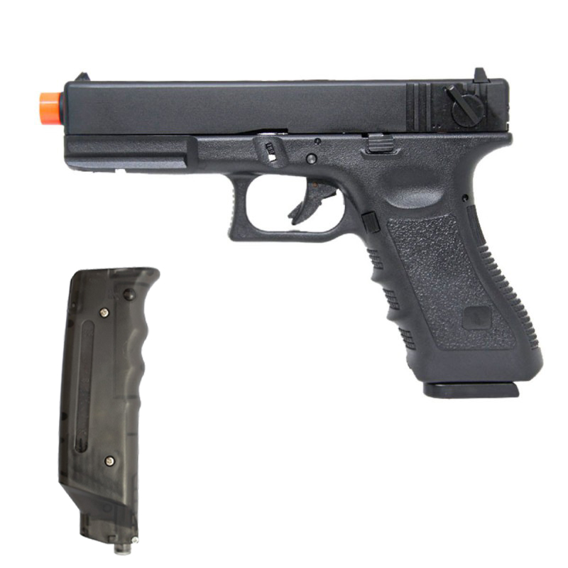 Pistola Airsoft Green Gas Glock R18 possui ação no modo rajada, sendo uma variante do modelo R17. Indispensável para jogadores que procuram uma pistola modelo Glock com Blowback e green gás como forma de atuação.