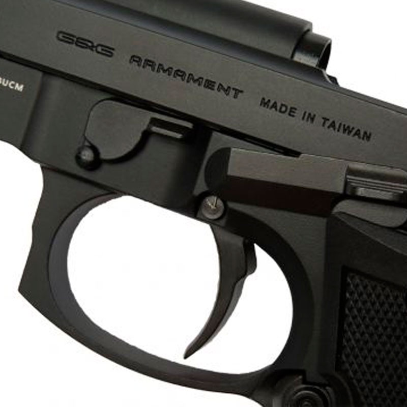 A pistola G&G é muito realista, não só pelos detalhes perfeitos e seu corpo em full metal, mas também devido ao seus sistema Blowback, onde a cada disparo efetuado o slide da pistola (parte superior) se movimenta para frente e para trás, simulando um disparo como a arma de fogo real.