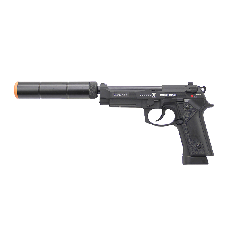 Bellum série 92 da secutor é uma Pistola Airsoft a gás Dual Power que vem para uso de CO2, mas também aceita magazine para green gás.