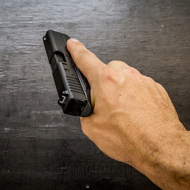 Quando as munições acabam o ferrolho (slide) para aberto.