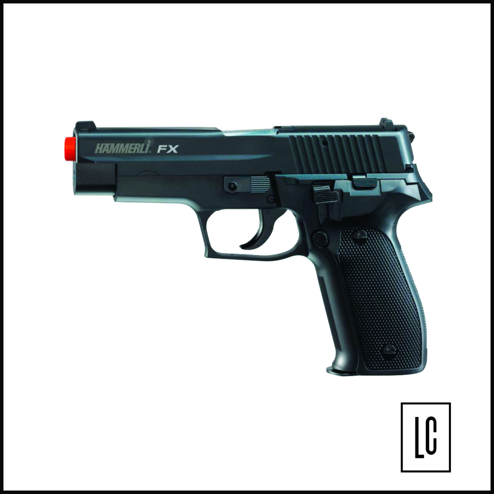 A Hammerli é uma fabricante Suíça de armas voltadas para o tiro esportivo e de recreação e em especial para o tiro olímpico, a Umarex tem licença para fabricar réplicas suas, por isso a Hammerli FX nada mais é do que uma cópia da Sig Sauer P226 que é uma pistola semi-automática produzida pela SIG Sauer, ela substituiu a pistola Beretta 92 e é agora a pistola padrão das forças armadas americanas e em várias organizações governamentais e policiais de outros países, a 226 vem em calibre 9x19mm mas existem outros modelos em outros calibres também, basicamente ela é a mesma arma que a P220 que é a arma que originou os outros modelos mas com a diferença de ter o carregador bifilar, dobrando sua capacidade de munição, tem o acabamento anodizado e muitas das suas partes são feitas em CNC, seu uso e manuseio é igual ao de qualquer outra pistola do mesmo padrão.