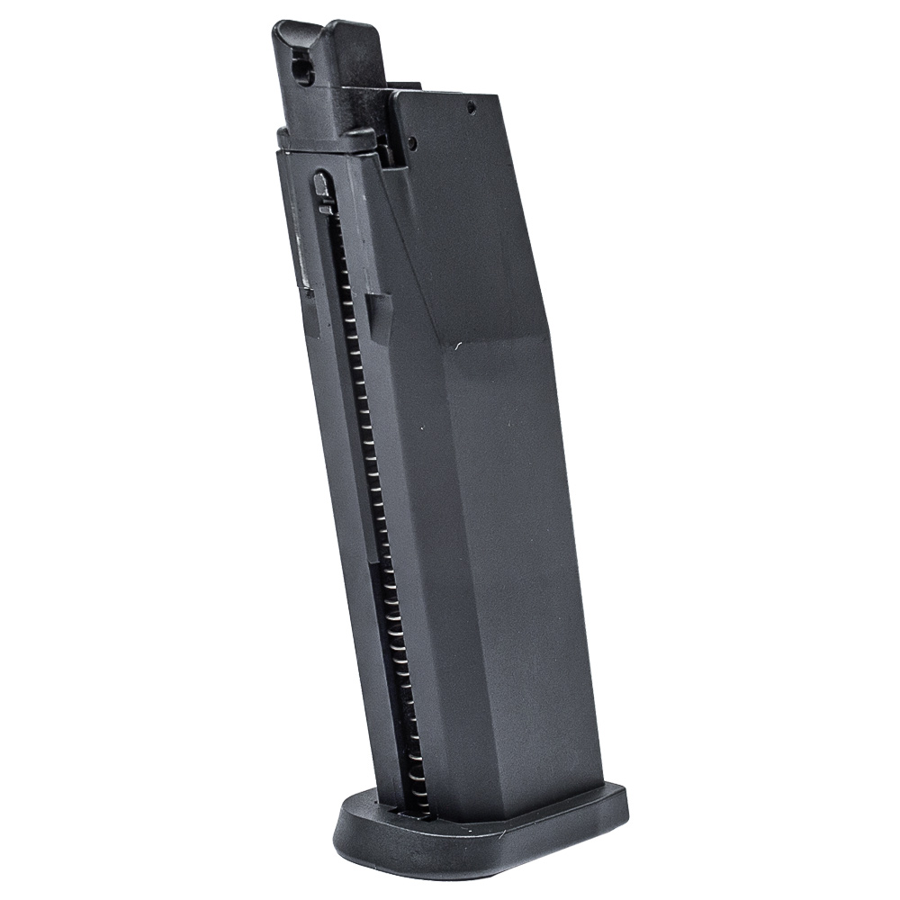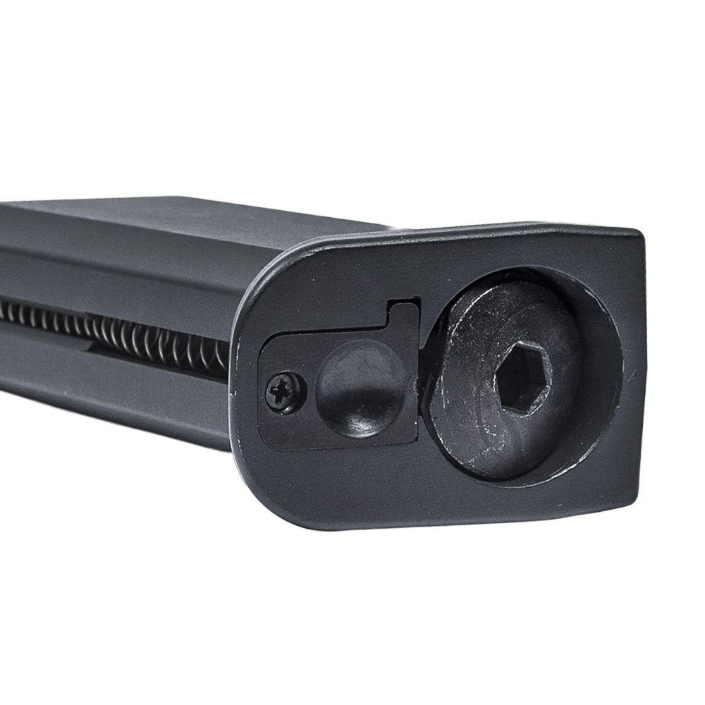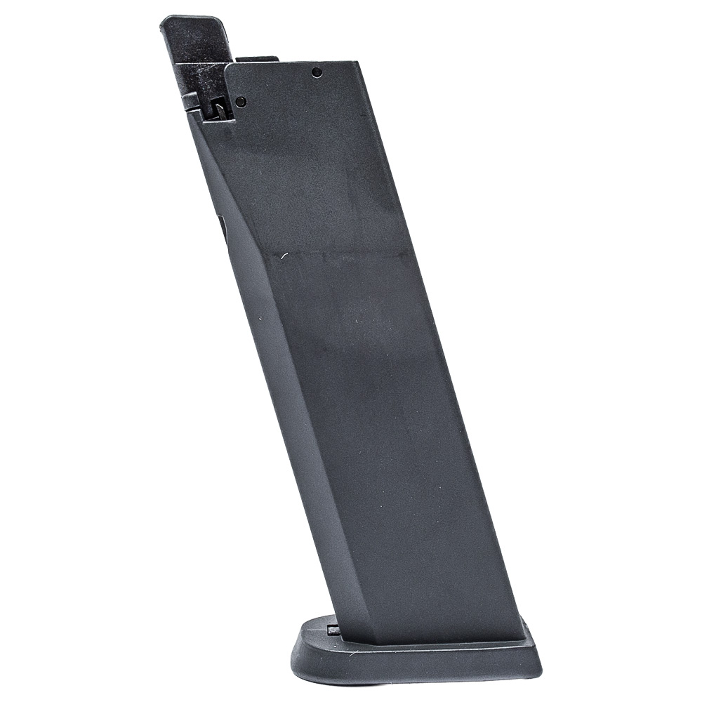 Possui sistema Gás Blowback (GBB). De forma simples, isso significa que a cada disparo, o ferrolho (a parte de cima da pistola) se move para trás e para frente com força, exatamente como na arma de fogo original. Esse movimento gera um "tranco" satisfatório a cada tiro e torna a operação muito mais imersiva. Ao final das munições, o ferrolho para travado na posição aberta, um detalhe que avisa o atirador que é hora de recarregar e aumenta ainda mais o realismo.