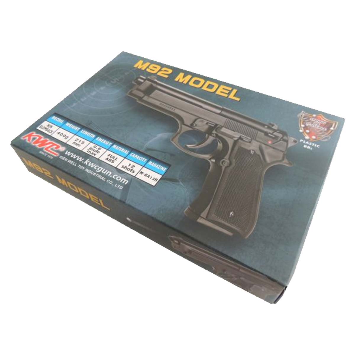 Pistola de Airsoft M92 é um modelo desenvolvido pela KWC, feito em plástico, muito resistente, possui escala 1/1 em relação ao modelo M92 de fogo que é muito comum nos EUA.