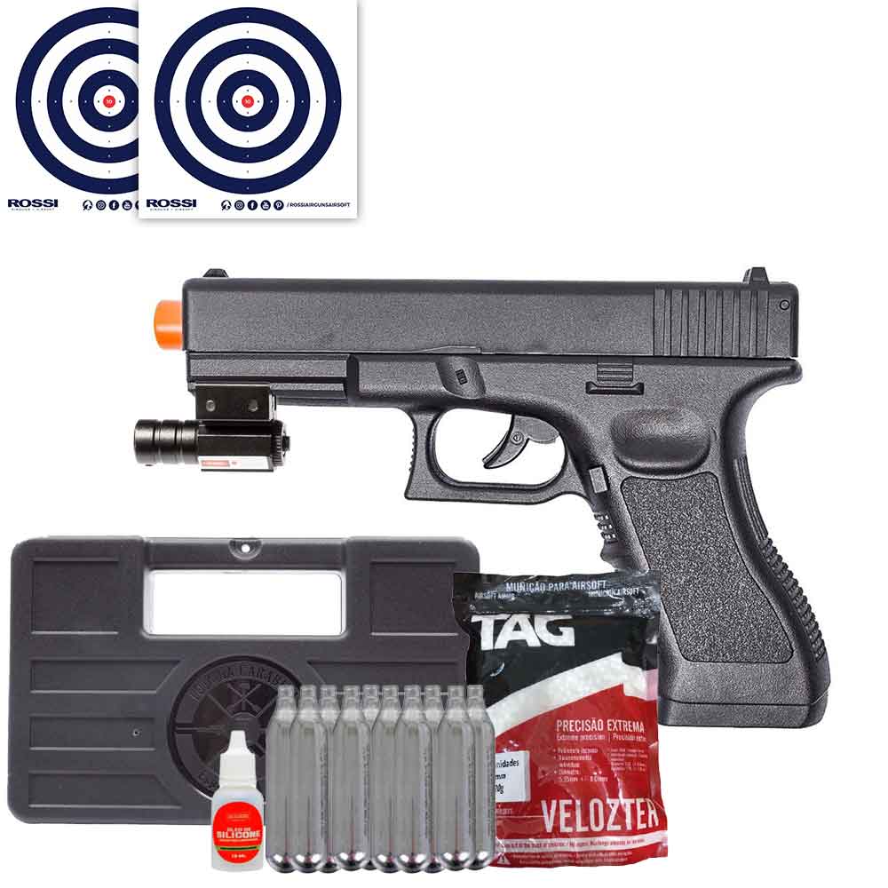 Pistola Airsoft Rossi G17 Co2 + Mira Laser + BBs 5000 Un + Maleta + Cilindros + Silicone + Alvos