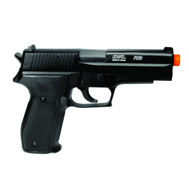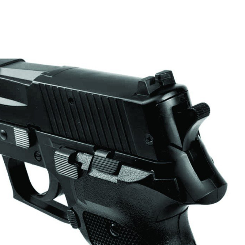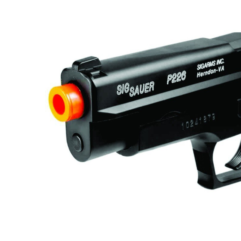 PISTOLA AIRSOFT SIG SAUER P226 é um modelo baseado na pistola de fogo SIG 226 uma semi-automática produzida pela SIG Sauer, ela substituiu a pistola Beretta 92 e é agora a pistola padrão das forças armadas americanas e em várias organizações governamentais e policiais de outros países, a 226 vem em calibre 9x19mm mas existem outros modelos em outros calibres também, basicamente ela é a mesma arma que a P220 que é a arma que originou os outros modelos mas com a diferença de ter o carregador bifilar, dobrando sua capacidade de munição, tem o acabamento anodizado e muitas das suas partes são feitas em CNC, seu uso e manuseio é igual ao de qualquer outra pistola do mesmo padrão.