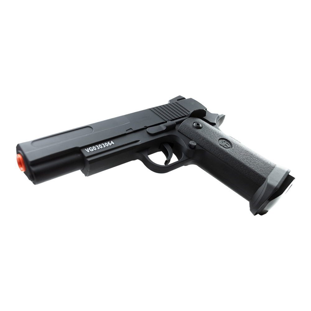 Pistola Airsoft Spring 1911, modelo V18 fabricada pela Vigor, tem uma velocidade de 160 fps* e 50 m/s*.