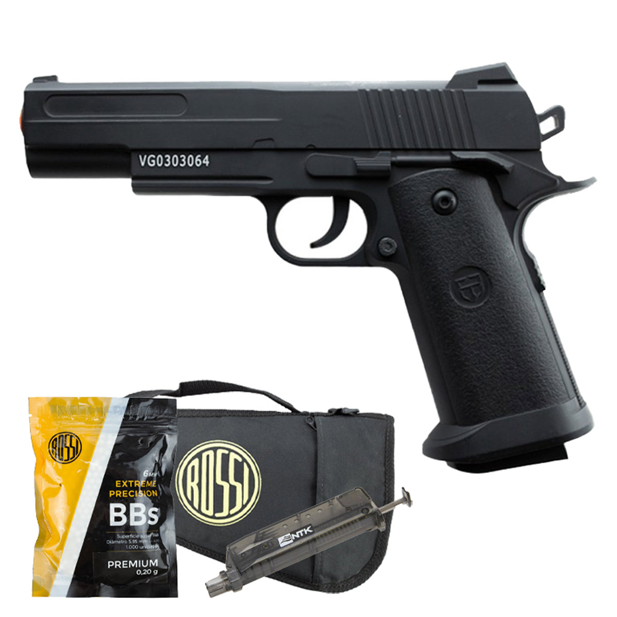 PISTOLA AIRSOFT SPRING 1911 V18 VIGOR + CAPA PARA PISTOLA ROSSI 30CM