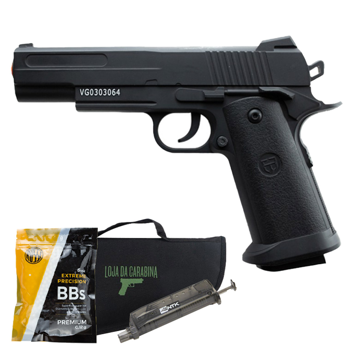 PISTOLA AIRSOFT SPRING 1911 V18 VIGOR + AIRSOFT BBS 0.12 ROSSI PACOTE COM 1000 UNIDADES