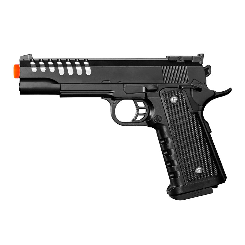 Pistola Airsoft Spring fabricada pela Vigor, é uma réplica do modelo 1911, feita em polímero, com alta resistência.